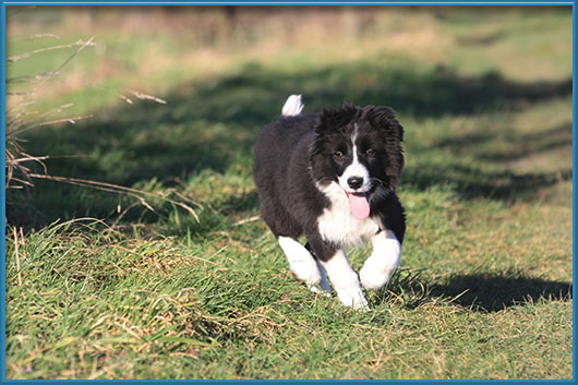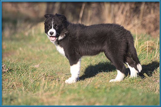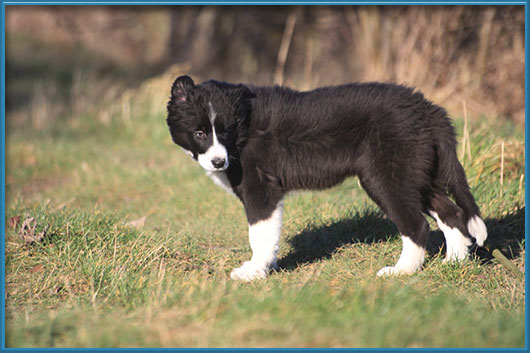 Denn: Vor über zwei Jahren traf ich Stanislava Balogova (www.lusika.wbs.cz)mit ihrer Hündin Jasmin Flower Tennant. Ich wußte sofort, das ich von dieser Hündin unbedingt einen Welpen wollte und sprach Stanislava daraufhin an. Und nun ist Jack da.Ich freue mich sehr und alles geht seinen Gang...verschleppte Socken, leicht angekaute Schuhe und ein schwarz-weisses Fellknäul, welches sich durch die Gegend kullert und mich auf Trab hält...ich bin sehr zufrieden!:o))