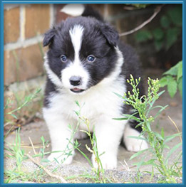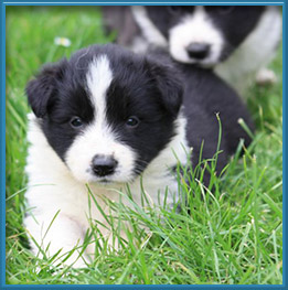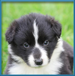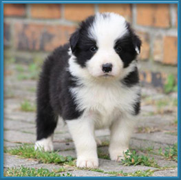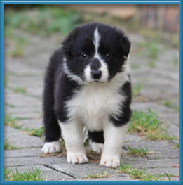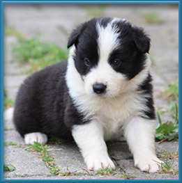 Es sind 4 Hündinen und 3 Rüden, klassisch in schwarz-weiß.