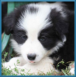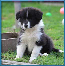 Es sind 4 Hündinen und 3 Rüden, klassisch in schwarz-weiß.
