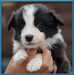 Feine und Jack´s Welpen sind da. Praktisch über Nacht kamen unsere Welpen und obwohl sie ganz brav fürs erste Foto stillhalten, zappeln sie zeitweise quietschfidel in der Welpenfkiste herum. Wie schön!!! Es sind fünf Rüden und zwei Hündinnen, alle schwarz-weiss und wunderschön!