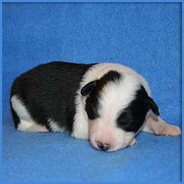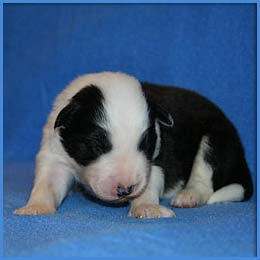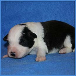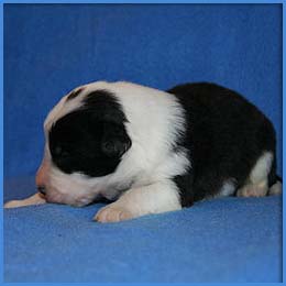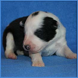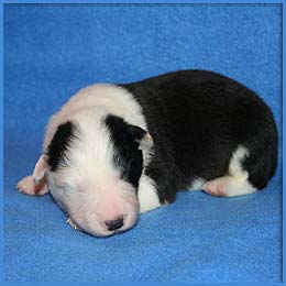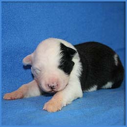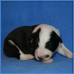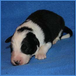 Eine Woche früher als gedacht hat Maddie ihre Welpen bekommen. Es sind acht Jungs und zwei Mädchen, alle schwarz-weiß.