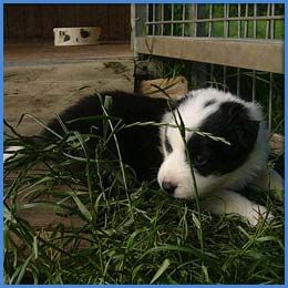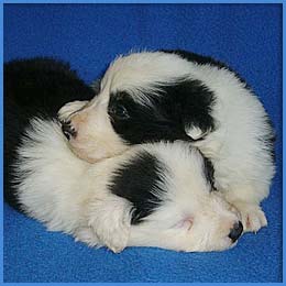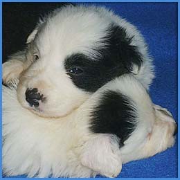 Eine Woche früher als gedacht hat Maddie ihre Welpen bekommen. Es sind acht Jungs und zwei Mädchen, alle schwarz-weiß.
