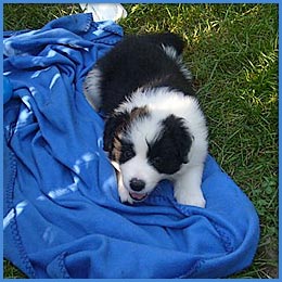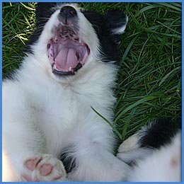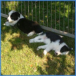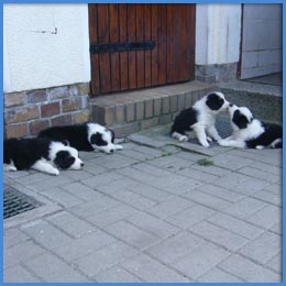 Eine Woche früher als gedacht hat Maddie ihre Welpen bekommen. Es sind acht Jungs und zwei Mädchen, alle schwarz-weiß.