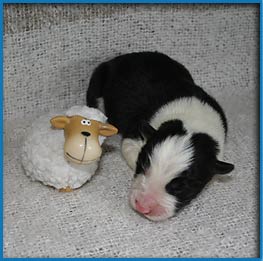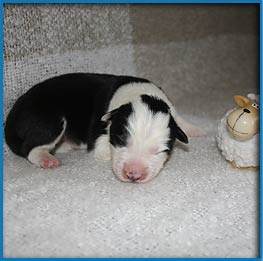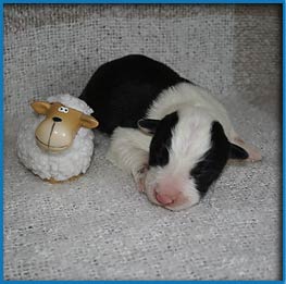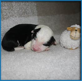 Maddies Welpen sind da! Aufregung in Maddies Wurfkiste, denn auch ihre Welpen sind gesund und munter ans Tageslicht geschlüpft. Es sind 3 Mädels und 5 Jungs, alle klassisch schwarz-weiß.