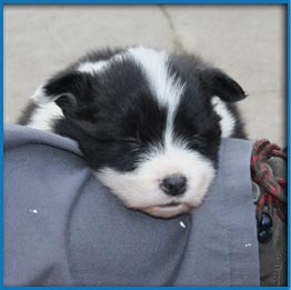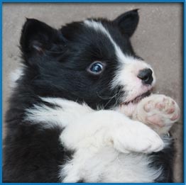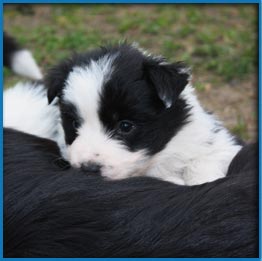 Aufregung in Maddies Wurfkiste – ihre Welpen sind gesund und munter ans Tageslicht geschlüpft. Es sind 3 Mädels und 5 Jungs, alle klassisch schwarz-weiß.