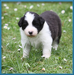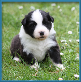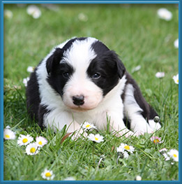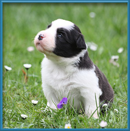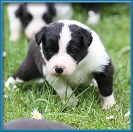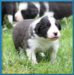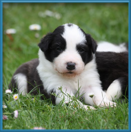 Darlas Welpen sind da! Es sind 6 Hündinnen und 3 Rüden, alle schwarz-weiss.