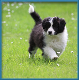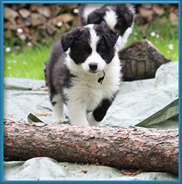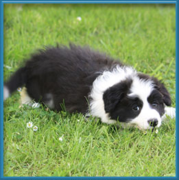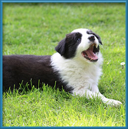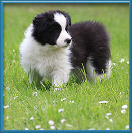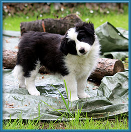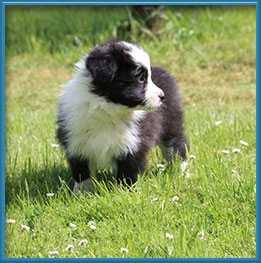 Darlas Welpen sind da! Es sind 6 Hündinnen und 3 Rüden, alle schwarz-weiss.
